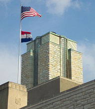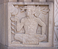 The evidence of the Kessler-designed Siloam Spring Park was beginning to slowly disappear. The new building called for razing of the Siloam Pavilion, just south of Broadway at the entrance to Siloam Park. The Hall of Waters was built over the present Siloam and Sulpho-Saline springs, Siloam spring being located under the front steps. Art Deco style architecture on the interior and exterior was chosen as in keeping with the Mayan Indian tradition relating to water and water gods, see details below.