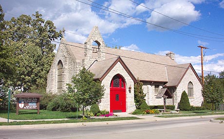 This picturesque Gothic Revival church is constructed of native, rubble-faced limestone, set in random ashlar. The front of the building faces south onto Regent, with the floor plan representing a modified version of a Latin cross. The west gable end of the church is parapeted, and is crowned with a cross. The peak of the vestibule gable also has a cross. The interior walls are stone, and highlighted by dark stained fir beams and arched braces, supported by stone wall trusses. The raised chancel is separated from the nave by a carved rod screen supported by walnut columns with Corinthian capitals. The site of the church was once the property of the General Realty and Mineral Water Company, formed in 1911. Major W.A.J.Bell later became its president, as well as a benefactor of the church. He donated the land for the church in 1932. That same year, noted Kansas City architect George M. Siemens designed the small Gothic Revival church. Major Bell was an Episcopalian, serving as vestryman in his parish church at Blechingley, Surrey, England. When local church members desired a physical link between Bell's parish church and theirs, Major Bell arranged for a finely carved stone from the 15th century, which had been removed during remodeling, to be shipped from his parish church in England. It was incorporated into the interior wall on the west side of the nave. Dedication for the church was held late in 1933. The church is a virtually intact example of a Gothic Revival "country" church, a style appropriate for the pastoral atmosphere of this resort city. The only alterations have been the replacement of the slate roof, and interior changes to the kitchen in the 1970's. The church is listed on the Local Landmarks Register.